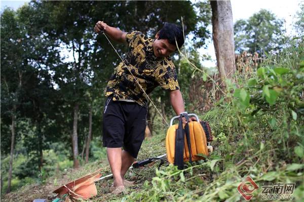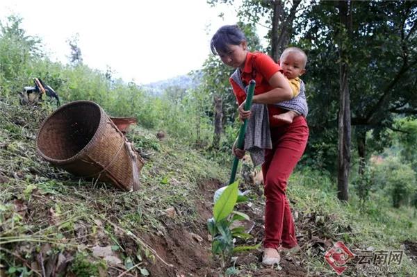此時,娜四正在茶地里查看茶樹的生長情況,時不時用鋤頭翻翻地、培培土;扎藥則拿著電動割草機清理隔壁山坡上的雜草。割草機的聲音很嘈雜,掩蓋了屋前潺潺的流水聲,停頓的間隙與山林間的蟬鳴相互唱和,卻全然沒有打擾到娜四小兒子在她身后的背簍里熟睡。“這個季節(jié)種茶容易活,我已經(jīng)泡好了茶籽,等那片地清理出來,我們準備開溝種上茶,還有之前種了茶籽沒有活的地方,也要補種一下。”娜四介紹,因為清理工作比較復雜,夫妻倆打算在小木屋住一晚,天亮了早早開工。