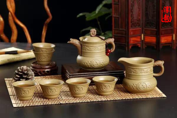 陶器中的佼佼者首推宜興紫砂茶具,早在北宋初期就已崛起,成為別樹(shù)一幟的優(yōu)秀茶具,明代大為流行。紫砂壺和一般的陶器不同,其里外都不敷釉,采用當(dāng)?shù)氐淖夏唷⒓t泥、團(tuán)山泥摶制焙燒而成。