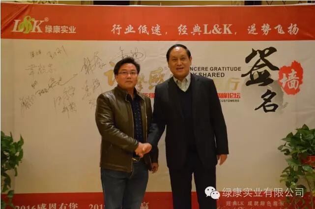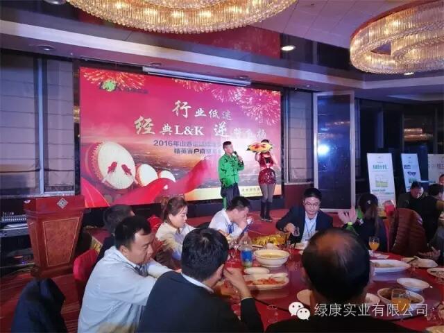 2016年11月23日,山西運城綠康實業(yè)有限公司精英客戶南京高峰論壇,在南京金陵新城飯店隆重舉行,本次會議邀請了公司七十余名客戶參加,會議以“行業(yè)低迷,經(jīng)典LK,逆勢飛揚”為主題召開,綠康實業(yè)有限公司董事長王章修、銷售總監(jiān)周小軍參加了本次會議。