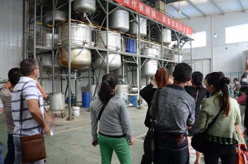 隨后,帶領(lǐng)客戶參觀生產(chǎn)車間,依次參觀了包材庫(kù)、成品庫(kù)、原藥庫(kù)和生產(chǎn)線,綠康公司精選優(yōu)質(zhì)原料,制造優(yōu)質(zhì)農(nóng)藥,在產(chǎn)品質(zhì)量方面敢于做保證。整潔的車間、先進(jìn)的全自動(dòng)生產(chǎn)線都讓客戶贊不絕口。在生產(chǎn)線上的工人熟練操作,一絲不茍,絕不馬虎,認(rèn)真的工作態(tài)度讓參觀的客戶深深佩服。