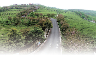 看過新茶山,我們又驅(qū)車趕到他和戰(zhàn)友們開發(fā)了整整十年的萬家山觀光茶園。一條水泥路轉(zhuǎn)了十幾圈方抵山頂。這里有圍欄和觀景臺(tái),有辦公區(qū)、會(huì)議廳、品茶室,有通往各個(gè)景區(qū)的木板棧道,有造型優(yōu)美的白色涼棚。登高遠(yuǎn)眺,群山起伏連綿,一條條公路蜿蜒其間,串連起一個(gè)個(gè)粉墻烏瓦的村莊。遠(yuǎn)近山坡上,遍布一排排齊整的茶樹,仿佛層層碧濤連綿不絕。