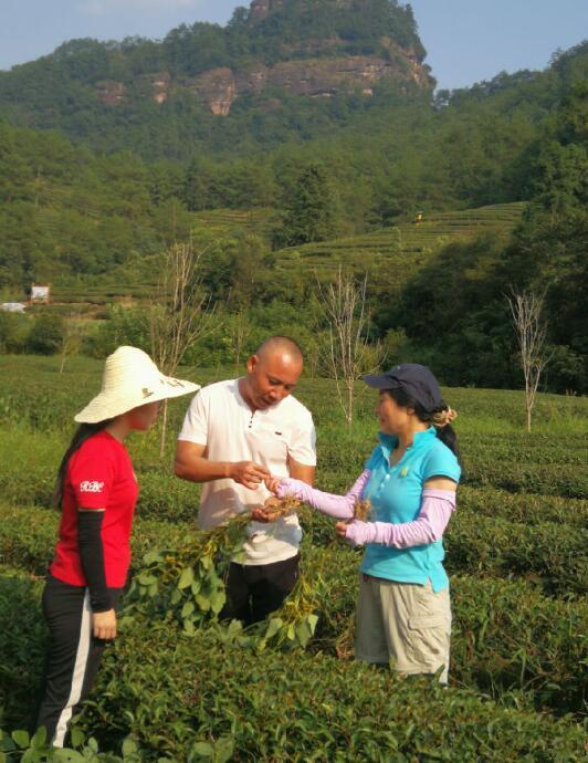 為探索茶園高效、生態(tài)、環(huán)保建設(shè)模式,福建農(nóng)林大學(xué)根系生物學(xué)研究中心主任廖紅與團(tuán)隊走進(jìn)星村鎮(zhèn),把高效豆科作物提高茶樹的養(yǎng)分利用效率,并達(dá)到減肥增效等科研成果,運用到茶葉基地建設(shè),以提高茶葉的產(chǎn)量及質(zhì)量。廖紅教授認(rèn)為,茶豆套種作用明顯,大豆可產(chǎn)生根瘤菌,具有固氮作用,增加土壤肥力,茶園里套種大豆可少下或不下氮肥。同時,金龜子、蚜蟲等更喜歡大豆葉子,從而減少茶樹蟲害。還能增加茶葉產(chǎn)量,實驗表明,靠近大豆的茶樹每平方米可長出190個芽梢數(shù),比沒有靠近大豆的茶樹多出一倍。